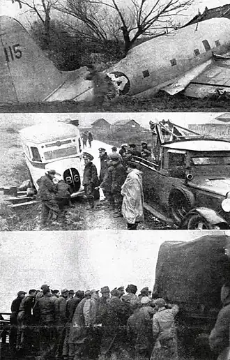 13. ^ "Crash of a Douglas DC-3 in Kiangwan: 19 killed". Bureau of Aircraft Accidents Archives. Retrieved 2024-01-10.