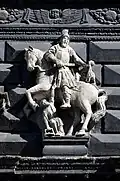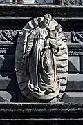 Before the Renaissance period, stone and brickwork buildings in Lviv were normally crowned with a pitched roof. Subsequently, decorative "attics" - parapets with rich sculptural decoration mounted over the facades - became a characteristic feature of the residential architecture. At one time they embellished the majority of houses in the Market Square and the main streets adjacent to the central square. "Diamond" rustication decorated the facades of many buildings dating from the sixteenth century, including the Black House, built largely during the 1580s.[4]