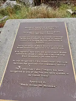 Black Mountain is the highest mountain peak in the Commonwealth of Kentucky, United States, with a summit elevation of 4,145 feet (1,263 m) [1] above mean sea level and a top-to-bottom height of over 2,500 feet (760 m). The summit is located at approximately 36°54′51″N 82°53′38″W / 36.91417°N 82.89389°W in Harlan County, Kentucky near the Virginia border, just above the towns of Lynch, Kentucky and Appalachia, Virginia.