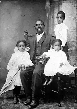 In the decades after the Civil War, emancipated slaves – or Freedmen as they were called – who were native to the Ozarks, and others who migrated to the region would continue to the Ozark communities. Some lived in isolated rural areas and in small towns – such as Fayetteville and Eureka Springs.[15] Some were teachers and ministers, some ran businesses from their home like laundries, cafe's, juke joints and boarding houses, renting rooms to travelers. Their communities were small and tight-knit, usually having no more than 1 or 2 churches and a single schoolhouse.[16] In the more urban areas, they lived in larger segregated Black communities.[17] Greene County, Missouri, which had one of the largest concentrations of Black people in the Ozarks pre and post Civil War, was home to a thriving Black middle-class and community of self sufficient, self reliant Afro-Americans.[18] In the city of Springfield, which is known as the Queen City of the Ozarks, the Black community made up over 22 percent of the total population in 1880 and by 1900 would boast several Black owned grocery stores, one of which was the largest in the city.[19] Springfield and the surrounding area was home to a variety of several Black owned businesses, there were many churches, adequate schools, various social clubs, a large number of property owners, farmers, artisans, craftsman and Black professionals like doctors, lawyers, educators, barbers, postal workers, city workers and politicians.[18] During this period around the turn of the early 20th century, the Black communities of the Ozarks had made great advances despite their disadvantages and the environment being very hostile.