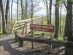 The 7.2-mile (11.6 km) James E. Edmonds Trail is named for "Mr. Eddie" Edmonds, one of the park's earliest and longest-serving rangers. This rugged trail features four secluded campsites that allow backpackers with reservations to escape into the park's quiet backcountry. The campsites are undeveloped and offer no facilities. In places the Edmonds Trail weaves in and out of laurel-filled coves and follows mountain streams with small waterfalls.[3] At the trail's northern end, there are 3,162-foot (964 m) Lookoff Mountain and views of Wolffork Valley, the source of the Little Tennessee River.