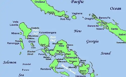 Blackett Strait separates the island of Kolombangara from Arundel to the south and Ghizo to the west.