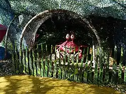 | Rumpus Clock Tower | 1994 | 2005 | Animated clock tower which formed the entrance to the bridge towards Rumpus Mansion. At fifteen and thirty minute intervals, various monsters and goblins emerged from behind doors. Upon the hour, a trow lifted the roof up, and two giant gargoyles next to the clock rocked back and forth. A surviving goblin can be found at the entrance to the current fairyland . A surviving gargoyle can be found near rumpus lawn by a pathway. | ![]() | |