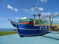 Also in Nurseryland is the wishing tree, a tree that houses a family of musical pixies. A vicar on a seat provides a popular photo opportunity, along with a toadstool which since the 1990s has had its date changed annually to the corresponding year. Nurseryland was sited on an area previously on park maps named as the fern Glen. It was expanded for the 1980 season with new additions. Little Miss Muffet was removed circa 2020. As of 2025 NurseryLand has a new perimeter fence . As of 2025 a new entrance pathway is going in nearer the chine café. As of 2025 the NurseryLand lookout viewpoint platform and talking telescope have been removed due to continual cliff erosion in the area . |