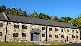 The Blackstone Manufacturing Company Historic District encompasses the "New City" or "High Rocks" area of Blackstone, Massachusetts, an industrial village associated with the Blackstone Manufacturing Company, which began operations in 1809. It includes an area roughly surrounding Butler, Canal, Church, County, Ives, Main, Mendon, Old Mendon, and School Streets. The district includes a wide variety of worker housing, as well as a granite storehouse, the only surviving company structure.[2] The district was added to the National Register of Historic Places in 1995.[1]