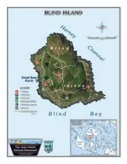 Blind Island Marine State Park is a public recreation area consisting of the entirety of Blind Island, an island of less than 3 acres (1.2 ha) at the entrance to Shaw Island's Blind Bay in San Juan County, Washington.[3] The island lies one-third of a mile west of the Shaw Island ferry terminal and has 1,280 feet (390 m) of saltwater shoreline.[4] The park is cooperatively managed by the U.S. Bureau of Land Management and Washington State Parks and is part of the San Juan Islands National Monument.[5][6]