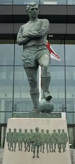 - ^ a b "Footballing legend Bobby Moore takes his place at Wembley". www.wembleystadium.com > Press Releases. Wembley National Stadium. 11 May 2007. Archived from the original on 30 June 2007. Retrieved 3 May 2010.
