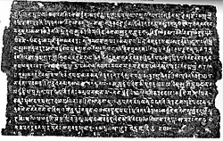 The Bodh Gaya inscription was published by John Faithfull Fleet in 1888.[1] It has subsequently drawn the attention of a number of scholars. Sylvain Lévi reinterpreted the inscription in 1929 in a study that showed the author of the text was familiar with Vasubandhu and the Abhidharmakoṣa.[2] In a complex analysis, Senarath Paranavitana attempted to link the Mahānaman of the inscription with Mahānāman, author of the Mahavamsa, but this interpretation has been rejected by Oskar von Hinüber.[3]
