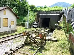 Bohinjska Bistrica railway station is a stop on the Bohinj Railway line from Jesenice to Trieste via the 6,327 m (20,758 ft) Bohinj Tunnel. The main road leading to the railway station divides the settlement into the upper and lower hamlets of Zgornja Vas (Slovene: Zgornja vas) and Spodnja Vas (Spodnja vas).