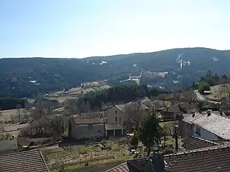 Bois Noirs Forest, with Signal de Mons on the right, viewed from the Rocher de la Vierge overlooking the village of Le Monestier, about 3 km away as the crow flies. | |