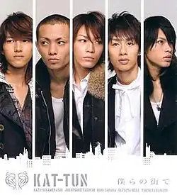 "Bokura no Machi de" (僕らの街で in Japanese text, translates to "In Our City") is the third overall single by the Japanese boy band KAT-TUN, and the second from their second studio album, Cartoon KAT-TUN II You. The first ballad to be released as a single, it is also the first commercially released song to not feature Jin Akanishi who took a sabbatical from the group in October 2006 to study in Los Angeles.[1] The single was released in three editions; a regular edition with instrumental versions of the title track and a b-side, a first press limited edition with a bonus track and its instrumental version and a limited edition with the single's music video.[2]