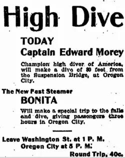 - ^ a b "High Dive Today". The Sunday Oregonian (advertisement). Vol. 19, no. 16. Portland, Oregon. April 22, 1900. p.18, col.7.