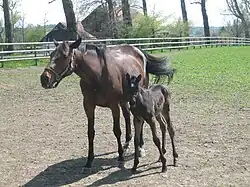 ![]() Borgia with her 2006 foal, Bahama Bay. | |