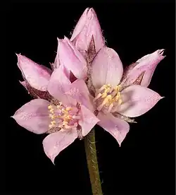 - Boronia juncea subsp. minima[11] has woolly sepals and petals, the sepals 3–5 mm (0.12–0.20 in) long with a tapered tip.[8]