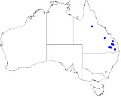 Boronia splendida grows in woodland between Chinchilla and Dalby.[4]