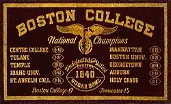 - ^ "1940 Football 'Team of Destiny' - National Champions". Boston College Athletics. Archived from the original on May 15, 2011. Retrieved February 18, 2008.