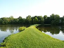The Boyd-Buchanan campus consists of sixty acres of land immediately adjacent to the Chattanooga Metropolitan Airport; access is granted via Moore Road. The school consists of five primary buildings: the elementary, middle school, high school, Colman's Cave and field house. In addition to this, there are two gymnasiums, a cafeteria, administrative building, student life center, athletics complex, football stadium, baseball field, softball field, and multiple practice fields. The outskirts of the campus are surrounded by a levee to prevent flooding from the nearby creek, and there is a large pond on one side of campus.