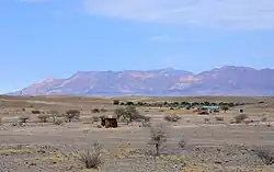 The Brandberg lies within the Karroo-Namib floristic region and some members of the Cape flora are represented.[10] A checklist of 357 species was published in 1974 by Bertil Nordenstam stating that 11 taxa are endemic to the Brandberg, with a further 28 species endemic to the Kaoko element.[10] A large and significant group of species has a disjunction between the Karroo-Namib region in the south, and the arid parts of north-east Africa.[10] These appear to be remnants of a hypothesised arid track joining the two areas.[10][11]