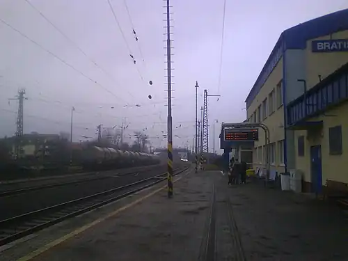 Bratislava Lamač railway station is the smallest true railway station in Bratislava. It contains four tracks of rails allowing the trains to cross tracks or the express trains to overtake slower passenger or freight trains.[1] The station building was reconstructed in 2007.