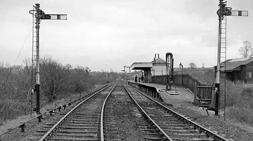 The station opened along with the Leamington extension of the Weedon line on 1 August 1895. It was on a passing loop and originally had two platforms with an underpass linking them, however the second platform was later taken out of use and removed, so trains in both directions called at the same platform, although the loop was retained for goods traffic until the line closed.[3]