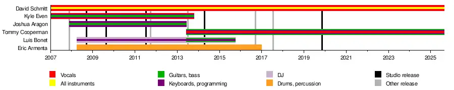 The band have released five studio albums: It's Classy, Not Classic (2008), Hello Fascination (2009), Hell Is What You Make It (2011), Savages (2014) and Dead: The Album (2019). Their hit single "Blackout" was certified platinum in the United States.