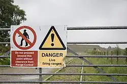 Gate across the railway at Strensall Ranges. The trolleys are hand-pushed to take the targets out to the range, but the targets remain static and the railway is used for transportation only.