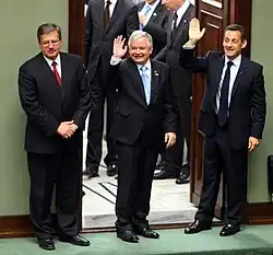 President Bronisław Komorowski with Angela Merkel and Nicolas Sarkozy (2011) -