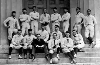 Brown University was slow to adopt football as an intercollegiate sport, compared to some other Ivy League schools like Princeton (1869), Yale (1872), Harvard (1873), and Penn (1876).[2] Brown president Barnas Sears banned the sport in 1862 "because of its violent nature."[2] It was introduced as an intramural sport in 1866, but Brown didn't play its first intercollegiate football game until November 13, 1878, losing a game against Amherst College.[2] Brown then played a rather sporadic schedule; they played (and lost) one game in 1880 against Yale; in 1886 played two games, losing one to Boston University and winning one against Providence High School.[2] Lack of campus interest in the sport led Brown to skip the 1887 and 1888 seasons entirely.[2] Future football legend John Heisman, frustrated by the lack of playing opportunity at Brown, joined a Pawtucket club team to get more time on the field.[2] He departed for Penn for the 1889 season.[2]
