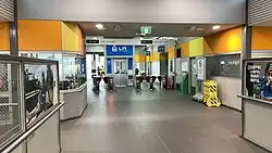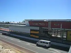 Bull Creek station is situated in the Kwinana Freeway median strip, and perpendicular to the Leach Highway interchange. It also features integrated bus services on the concourse level; this level operates as a bus station. The station opened along with the rest of the Mandurah line on 23 December 2007.[3][4][5]