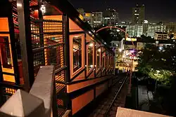 The 1901 Angels Flight funicular railway, originally connecting Hill Street and Olive Street immediately south of the east end of the 3rd Street Tunnel, was dismantled in 1969, relocated approximately 300 feet (91 m) further south and rebuilt in 1996 to connect Hill Street with California Plaza.[25]