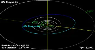 - ^ a b Yeomans, Donald K., "374 Burgundia", JPL Small-Body Database Browser, NASA Jet Propulsion Laboratory, retrieved 11 May 2016.