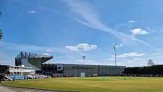 Burnley Cricket Club has its origin in a side called the Trafalgar Club, known to have played a match in the Bull Croft (near the town hall) in 1828. Over the next few years they played matches at Stoneyholme and Healey Heights, before taking the name Burnley Cricket Club by 1833. A field near Red Lion Street then became their home until in 1843 they moved to Turf Moor. After two years here, the team played for another two near Duke Bar before making Turf Moor their permanent home.[4] In 1857 the team was disestablished, and between 1859 and 1863 a team organised by the Burnley Militia, called the Burnley Wellington Club, played at the ground. In 1864 Burnley Cricket Club was re-formed and was soon making progress, fielding three teams.[5]
