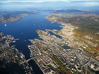 1. ^ Hagen Hartvedt, Gunnar (1994). "Byfjorden". Bergen Byleksikon (1st ed.). Oslo: Kunnskapsforlaget. p. 139. ISBN 8257304859.