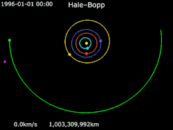 7. ^ a b "Solex 10 estimate for Next Perihelion of C/1995 O1 (Hale–Bopp)". Archived from the original (TXT) on August 10, 2012. Retrieved December 18, 2009.