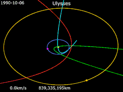 The Ulysses spacecraft made an unexpected pass through the tail of the comet on 3 February 2007.[18] Evidence of the encounter was published in the 1 October 2007 issue of The Astrophysical Journal.[19] Ulysses flew through McNaught's ion tail 260 million km (1.7 AU) from the comet's core and instrument readings showed that there was "complex chemistry" in the region.[18]