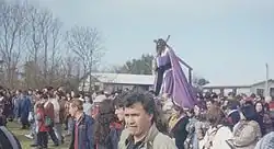 The island is known for its annual ceremony in honour of Jesus of Nazareth, involving a procession with the Cahuach statue of Jesus through the island's esplanade, accompanied by music and dancing.[1][2] The island of Caguach is also called 'the island of devotion' because of this religious festival, one of the most important in the south of Chile. The celebration is traditionally held each year on August 30. Since the turn of the 21st century, it has been held on the third Sunday of January,[3] so as to take full advantage of folklore tourism during summer.