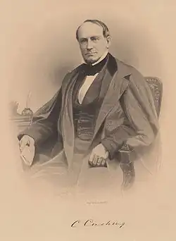 He became an associate justice of the Massachusetts Supreme Judicial Court in 1852 until 1853.[12] During the presidency Franklin Pierce, from March 7, 1853, until March 3, 1857, he was Attorney General of the United States. Cushing supported the March 1857 Dred Scott decision.[13]