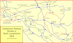 There were considerable mineral resources in South Lanarkshire, and when the Caledonian Railway was unable to fund the building of a railway to serve the collieries, an independent line, the Lesmahagow Railway, was built. It ran south from Motherwell: the present-day junction at Motherwell station is named Lesmahagow Junction.