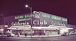 The California Club operated from 1958 to 1973. Phil Long took over operation of the casino located at the corner of First and Fremont Street in Downtown Las Vegas, Nevada in 1958.[1] The locals casino catered to local gamblers. It was owned and operated by Phil Long and George Milford and was a casino only without any hotel rooms. The California Club was sold to Steve Wynn in 1973. The California Club was combined into the Golden Nugget shortly after the purchase by Wynn.