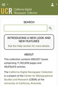 - ^ "California Newspaper Microfilm Archive". cnma.ucr.edu/CNMA.