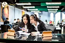 In addition to the library's print collection, the library is supported by a robust website and digital collection. The library has subscribed to over 10+ databases, thousands of e-books, scholarly journals, research guides, videos, and over one million articles. The library digital resources includes government documents, trade publications, periodicals, multimedia content, and special collections which can be accessed by an unlimited number of users at one time and anywhere outside the CamEd campus via OneLogin and VPN access. The library website also has an e-catalog search function, which is enabled with an interlibrary loan request function.[15] The library also allows students to check out laptops, tablets and e-book reading devices. Moreover, the library has available USBs with accounting learning software and hard drives for language lab programs.[15] The library is open every day from 7:00 am until 9:00 p.m. including weekends and government holidays. In addition, the Library extends its hours until 11:00 p.m. during exam sessions[15]