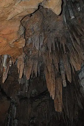 The park has parking, accommodation for volunteers and researchers, garbage bins, a kiosk, benches and picnic tables, toilets and showers. The visitor center has media projection equipment, a lecture room, restrooms and administration areas.[13] The visitor center provides environmental education. The main attraction is the Gruta dos Jesuítas (Jesuit's Cave) with a length of about 500 metres (1,600 ft) of large halls that contain many beautiful speleothems such as stalagmites, stalactites, columns, curtains and travertines.[11] The Gruta da Fada is open only to pre-authorized groups for environmental education or research.[12] There is a 900 metres (3,000 ft) Forest Trail where visitors can learn about the native plant species.[11]