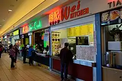 Although most restaurants are independent businesses, there are some chains such as Manchu Wok (eight provinces), Hons Wonton House (metro Vancouver), Kirin Chinese Restaurant (metro Vancouver), Congee Queen (Toronto, Peel, and York regions), and Mandarin Restaurant (southern Ontario). Ho-Lee-Chow, a pun on the expression holy cow, franchised to six provinces between its 1989 launch and 2009 closure.[12] The Regal Palace chain of four restaurants, owned by Yuk Yee Ellen Pun and Patsy Lai, went bankrupt and ceased operations in 2013 while owing 60 employees $676,000 in unpaid wages.[13][14] Imitation restaurants include Ding Tai Fung (intentionally similar to Din Tai Fung) in First Markham Place and Hutaoli Music Restaurant & Bar in Bridlewood Mall.[15]