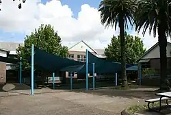 Further land on the northern side of the school was resumed in 1945, and later the gymnasium was erected on part of this land, and completed in 1954. Increasing enrolments and a lack of specialist rooms led to a major extension of the school buildings again being undertaken. The new structure, opened in 1969, contained six science laboratories, two music rooms, three art rooms, two technical drawing rooms, two woodwork rooms, a metalwork room, a new library and several classrooms, new toilets and a new canteen. This extension was connected to the old building via overhead walkways, and due to it being constructed around a central courtyard, quickly gained the name of the 'doughnut' block.[4]