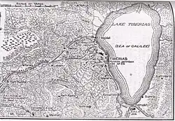 A troop with a Hotchkiss gun was ordered to the shore of the Sea of Galilee to the north of Tiberias, where they cut the garrison's only line of retreat.[15][16]