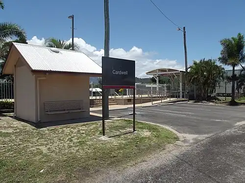 Cardwell railway station is located on the North Coast line in Queensland, Australia. It serves the town of Cardwell. The station has one platform. Opposite the platform lies a passing loop.