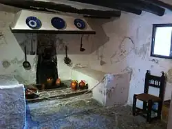 The building is a rural house of farmers, with their typical objects. It still has the same rural and modest atmosphere of the past. The façade and the walls are of well worked masonry. It has three floors, with the ground floor consisting of a square, a kitchen with a kitchenette and an entrance. A staircase leads to the first floor, where there is a room and two bedrooms. The false floor is a barn with a two-sided roof.[3][4]