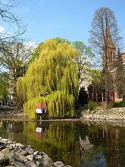 Park Casimir the Great is a fragment of the much larger park of the Order of Saint Clare in Bydgoszcz dating back to the first half of the 17th century.[1] Sisters of Poor Clares came to Bydgoszcz in 1615, and after the construction of the monastery (now one of the city museum buildings), the adjacent garden was created and organized. It can be accessed today through an alley at 3 May Street 3: its surface is approximately 3.5 hectares.[2] The original garden was not only ornamental, but also practical: a fish pond, a kitchen garden, an orchard with medicinal plants were part of it.[3]