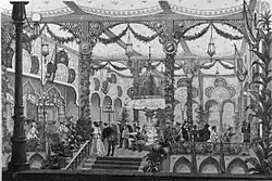 Built by Georg Carstensen, founder of Tivoli Gardens, Casino was originally envisioned as a "Winter Tivoli" with bazaar, promenade concerts and soirées. Carstensen financed the project through the sale of shares. In November 1845, he had raised 200,000 Danish rigsdaler.[1] The building was designed by H. C. Stilling who had also worked for Carstensen during the establishment of Tivoli Gardens. The entertainment venue opened on 22 February 1847.[2]