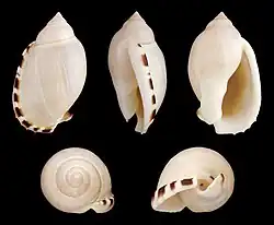 | Five views of a shell of Casimaria erinanceus form vibex | |